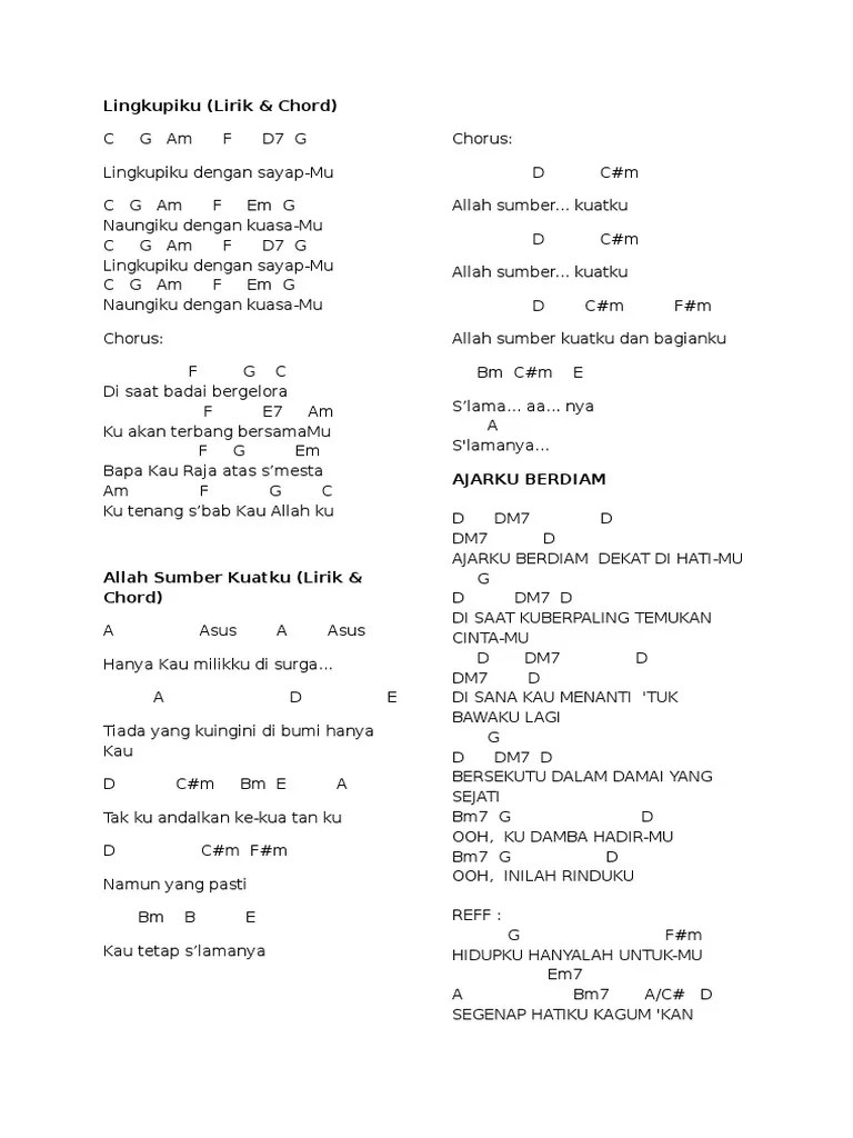 Entah berapa kali ku dilanda badai. Dan ku terbang tinggi jauh di angkasa. Saat diriku digoda oleh iblis. Bapa kau raja atas semesta. Perasaan gundahku semuanya ku tepis. Ku tenang sebab kau allahku. Wo yu ni zhan chi bao feng shang kong. Kumpulan lirik dan akor lagu rohani. Lingkupi aku lingkupiku dengan sayapmu naungiku dengan kuasamu reff. Bapa kau raja atas semesta Di saat badai bergelora, 'ku akan . Bapa kau raja atas s'mesta Lingkupi ku dengan sayap mu naungi ku dalam kuasa mu di saat badai bergelora ku akan terbang bersama mu bapa kau raja atas semesta ku tena.